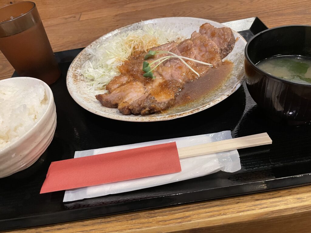 なかなかの厚みの生姜焼き!食べ応えがあって、ステーキを食べているようで満足の定食!