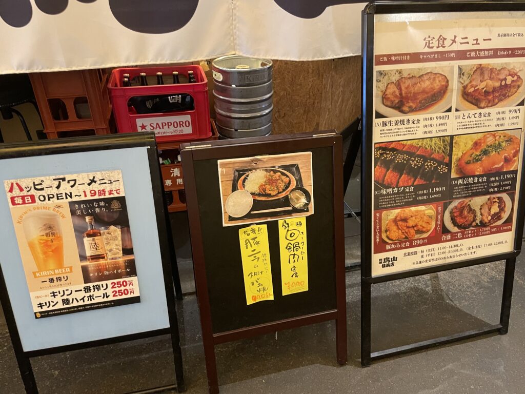 豚屋と言いながら、鳥山という店名にちょっと戸惑いながら、店前にあるメニューを見たら、美味しそうだったので、すぐにランチはここに決めました!