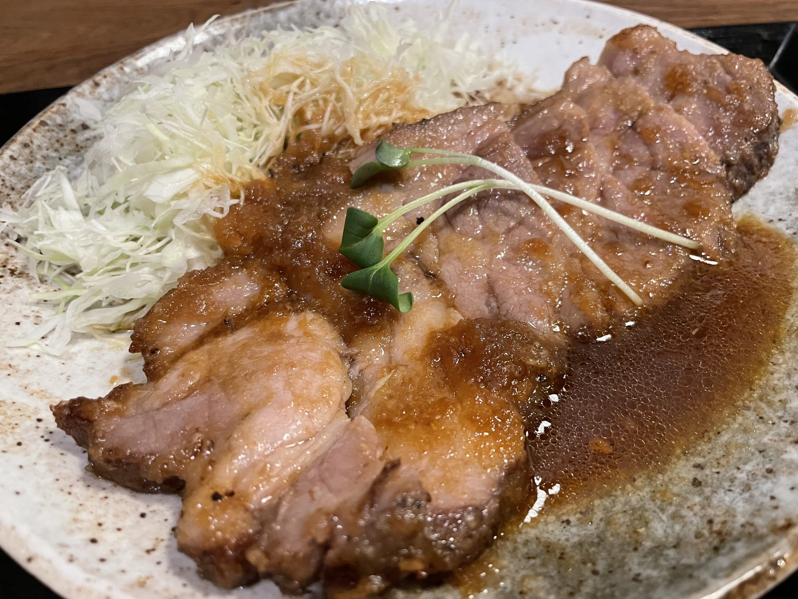 なかなかの厚みの生姜焼き!食べ応えがあって、ステーキを食べているようで満足の定食!
