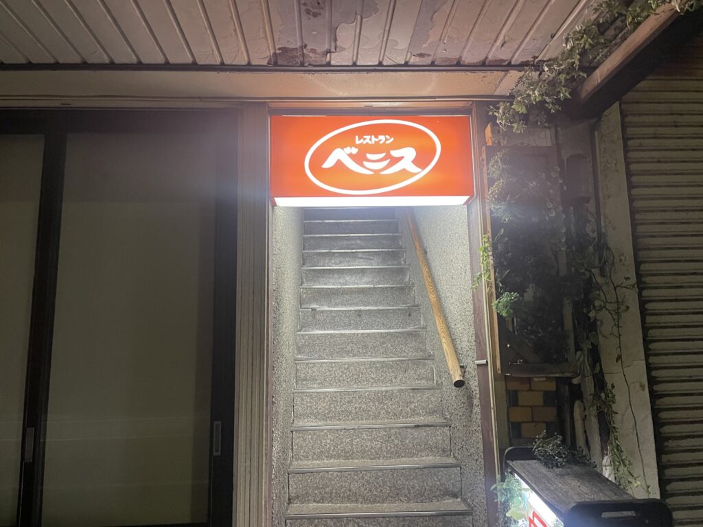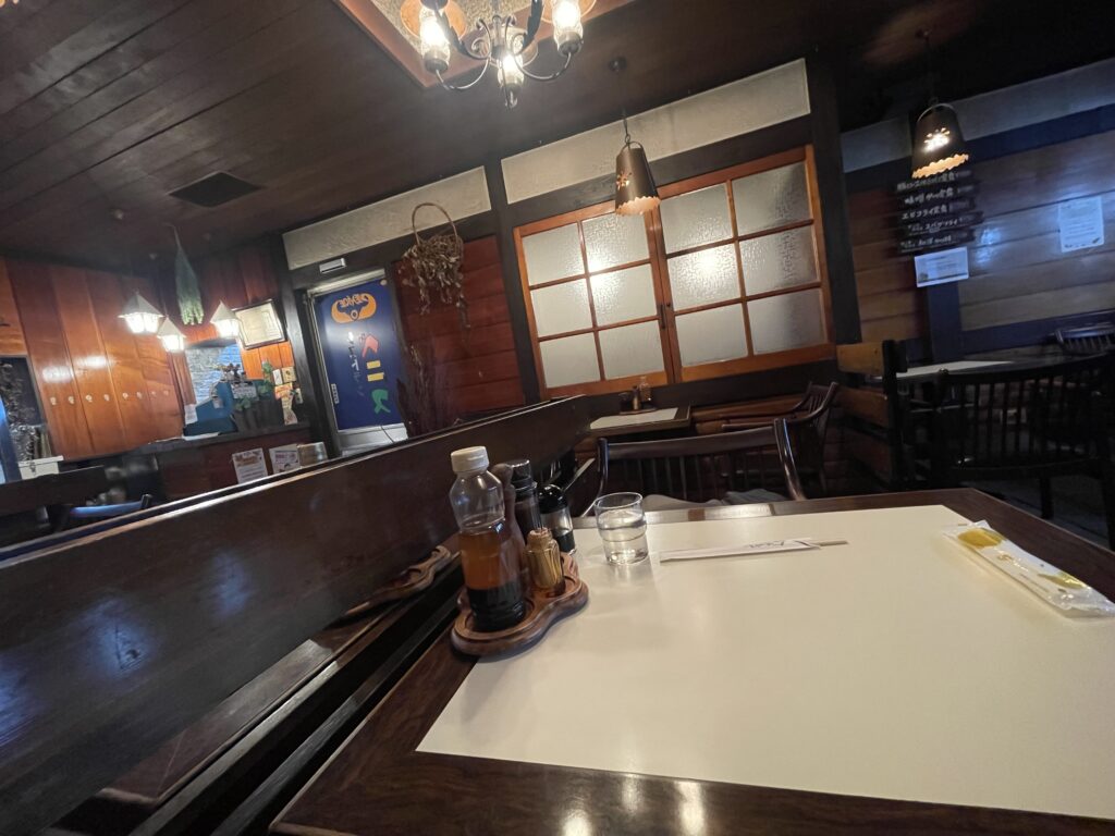 洋食店・ベニス!迷わず店内に入りました。なかなかの渋い感じのお店でお客さんは一人もいなかったので、『やってます?』と思わず聞いてしまいました。もちろん、やっていたので一人、店内に入り、エビフライ定食を注文!