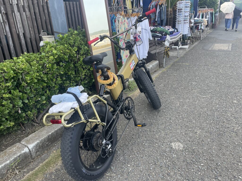 今年の夏に、MATE Xで鎌倉の稲村ヶ崎に行ったときに付近の古着屋さんでTシャツを買った時の写真です。