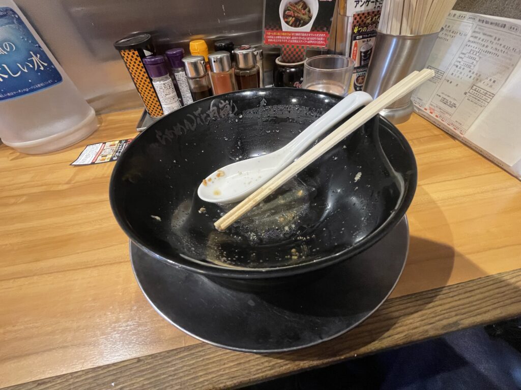 豚骨ベースの背油醤油ラーメンです。熟成された秘伝のタレがスープをよりコクが出て美味しさが増します!やっぱり美味しいよな~!