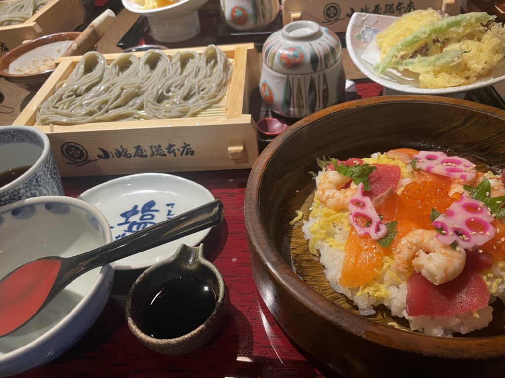 このへぎそばに、ちらし寿司が付いたセットをいただきました!