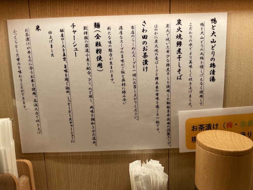 スープは、鳥取県の銘柄鶏「大山どり」や、昔ながらの出汁の定番「炭火焼の鯵煮干し」、 豊臣の時代から愛される鴨を使ったスープで、鴨そば さわ田さんの拘りが半端なく、これはおススメのラーメンです!