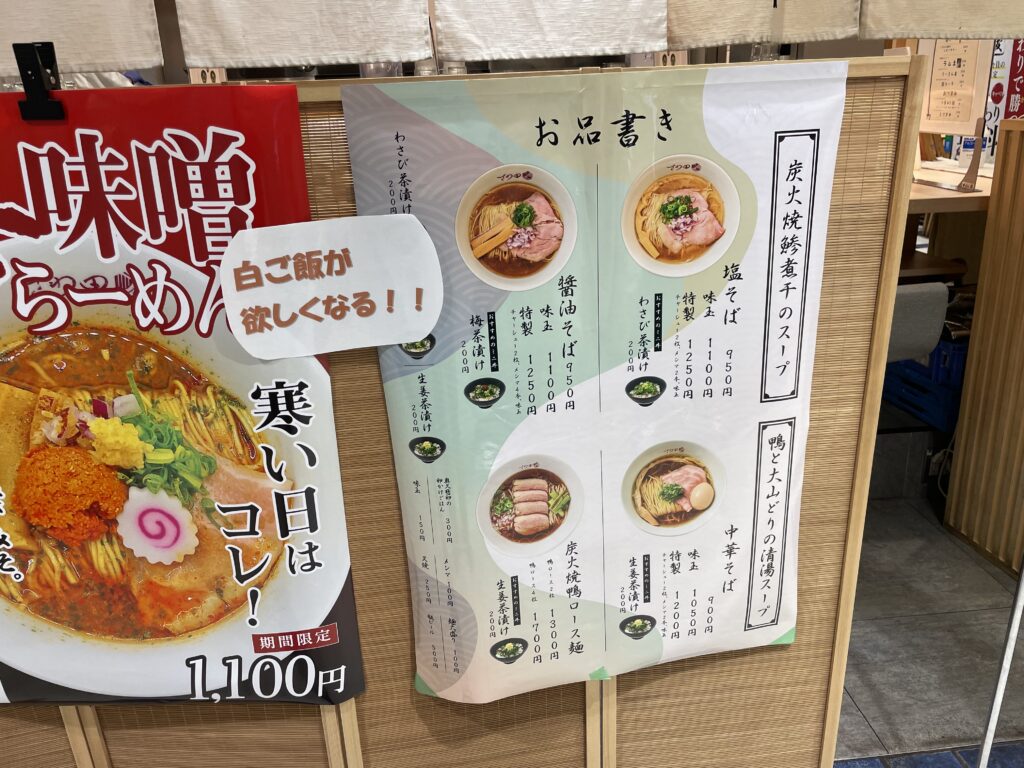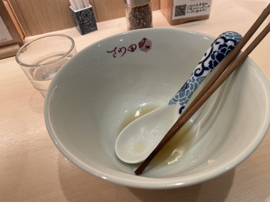 鴨そば さわ田は、味わいに拘った「鴨と大山どりの鶏清湯」と「炭火焼鯵煮干淡麗スープ」のらーめんが食べられます。今回食べたのは、炭火焼鯵煮干し 塩そば 味玉。鯵の味が感じられて、凄く上品な味が楽しめて、本当に美味しかった!