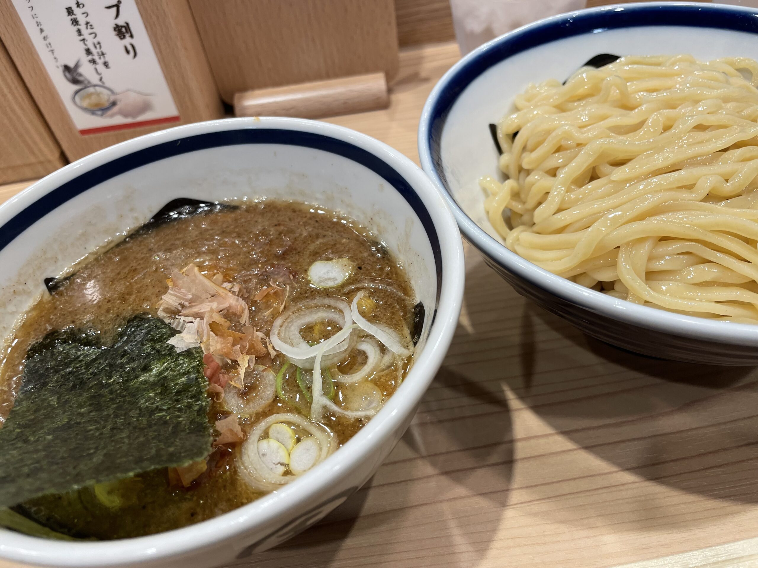 初めて、食べた玉のつけめん!こちらは、香り高い鰹節が効いたスープが、特徴らしモチモチの太麺によく絡んで非常に美味しかった!つけめん玉は、つけ麺だけでなく、こちらはラーメンやミニ丼もあるので、次回はまた別のものを注文しようかな。