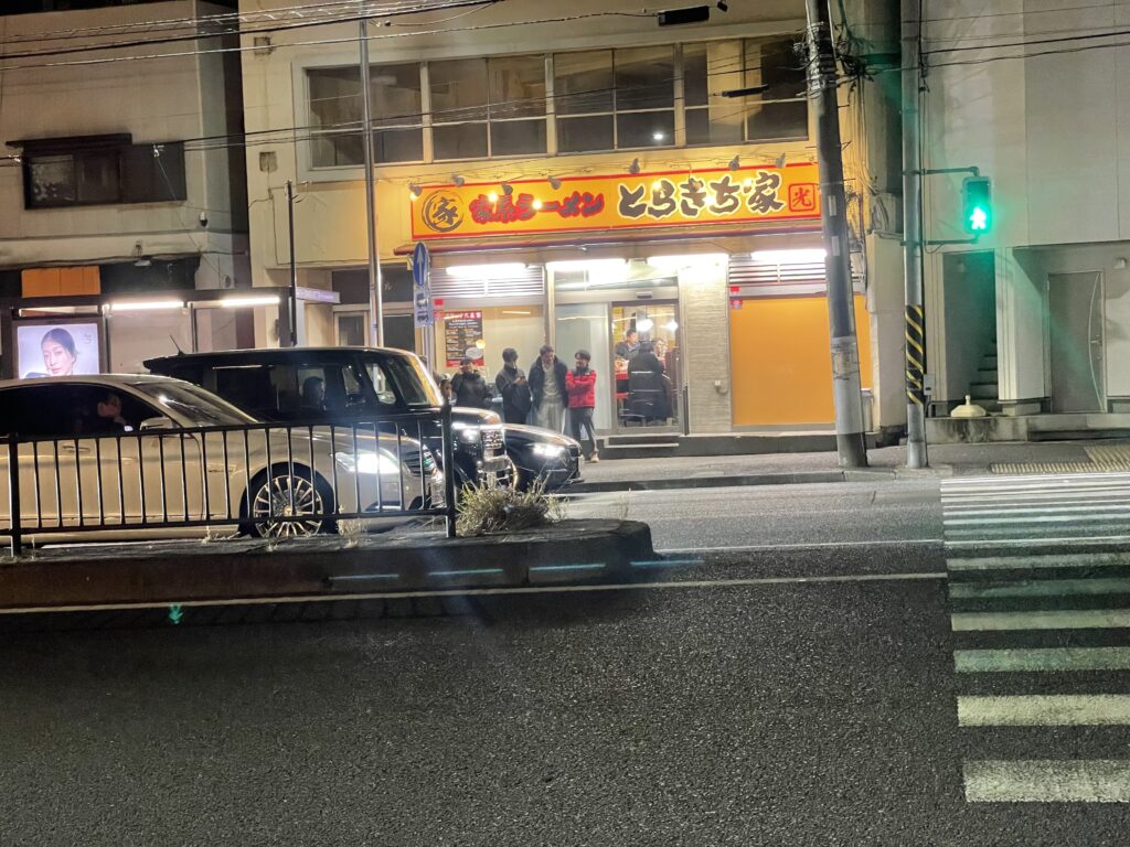 写真でも確認できると思いますが、とらきち家の外は、常に行列ができていて、非常に人気ラーメン店であることがわかりますよね。